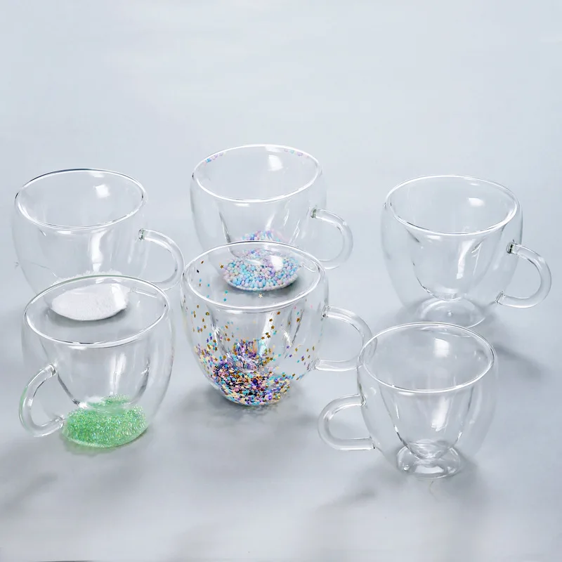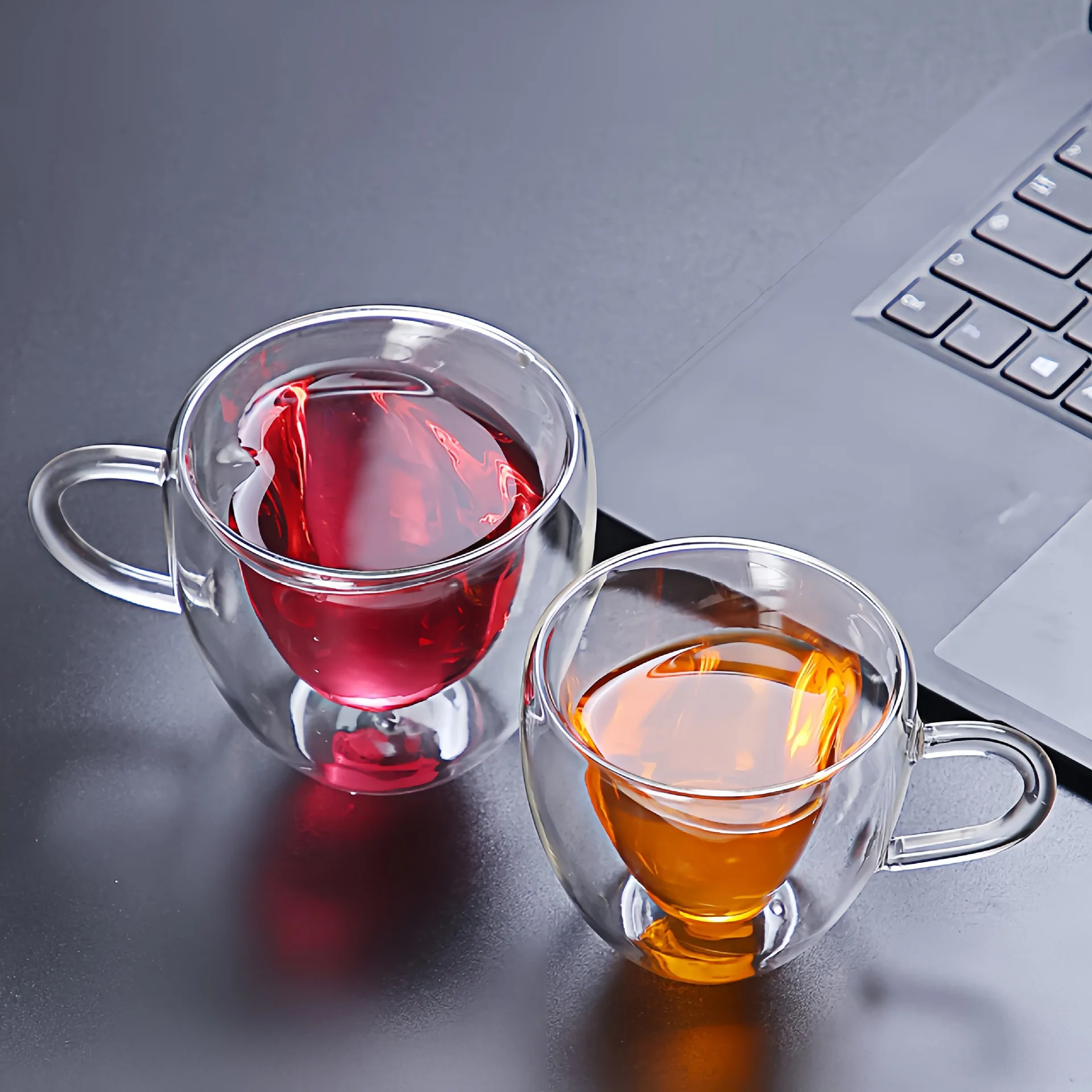 Heart Love Shaped Glass Mug for Couple, Double Glass Cup, Heat-Resistant Glasses, Cup for Wine, Tea, Milk, Coffee, Drinkware
