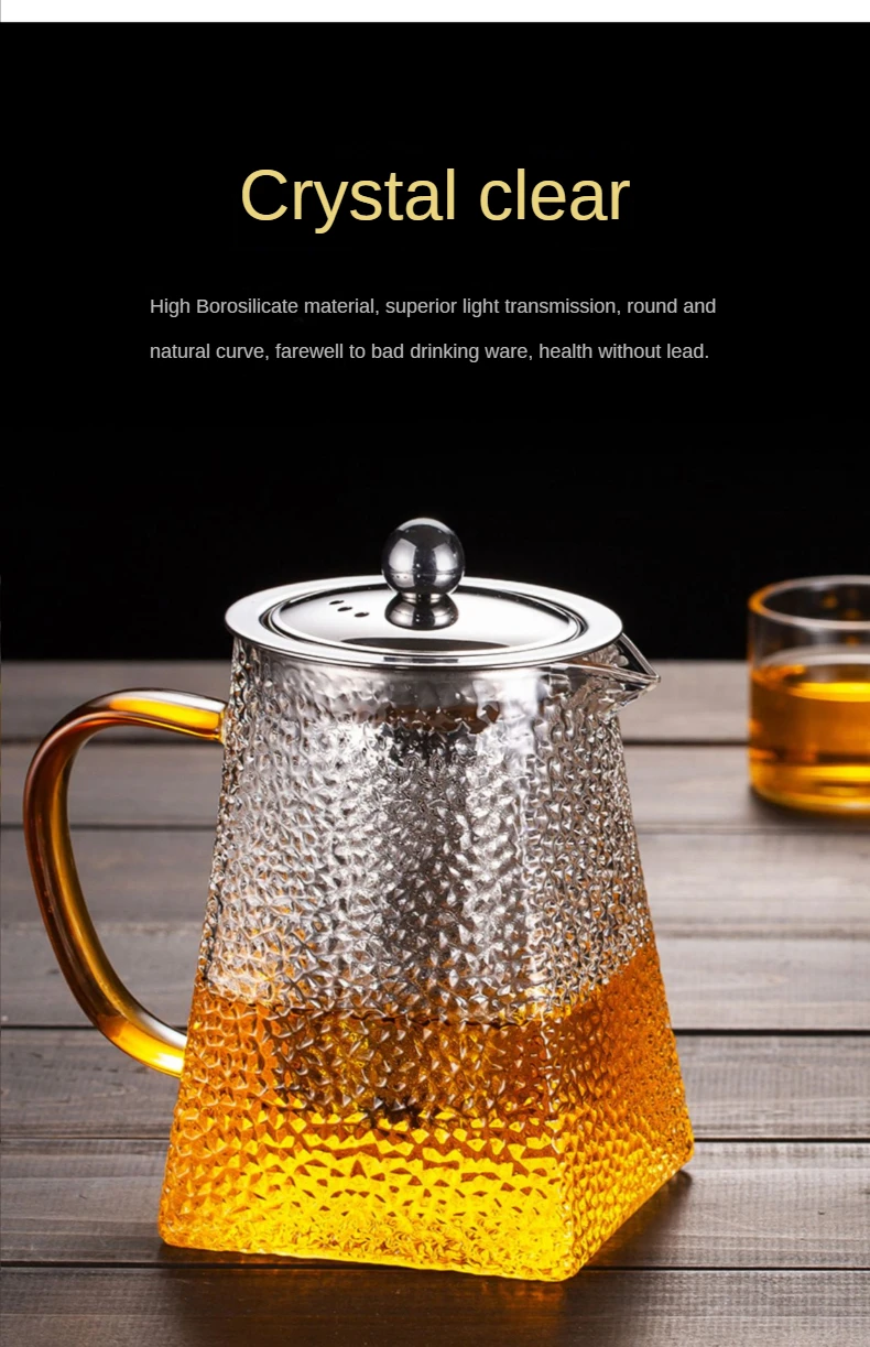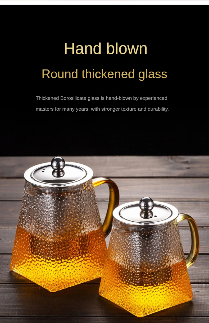 High Quality Hammer Glass Teapot With Stainless Steel Filter Puer Tea Maker Heat Resistant Glass Teapot and Cup Set Kettle Pot