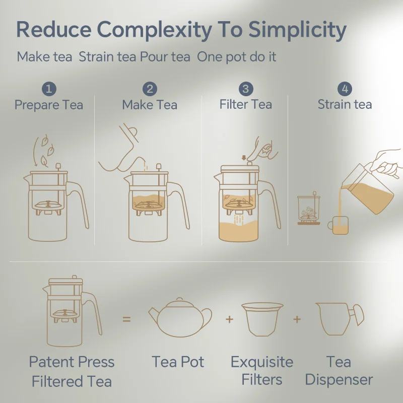 KAMJOVE Press Art Tea Cup Auto-open Teapot Infuser Heat Resistant Glass Tea Set One-button Filtering Tea Separation Glass Kettle