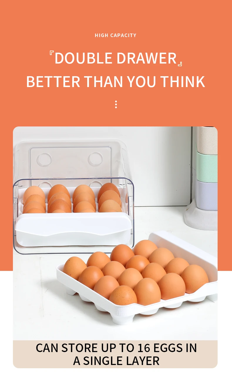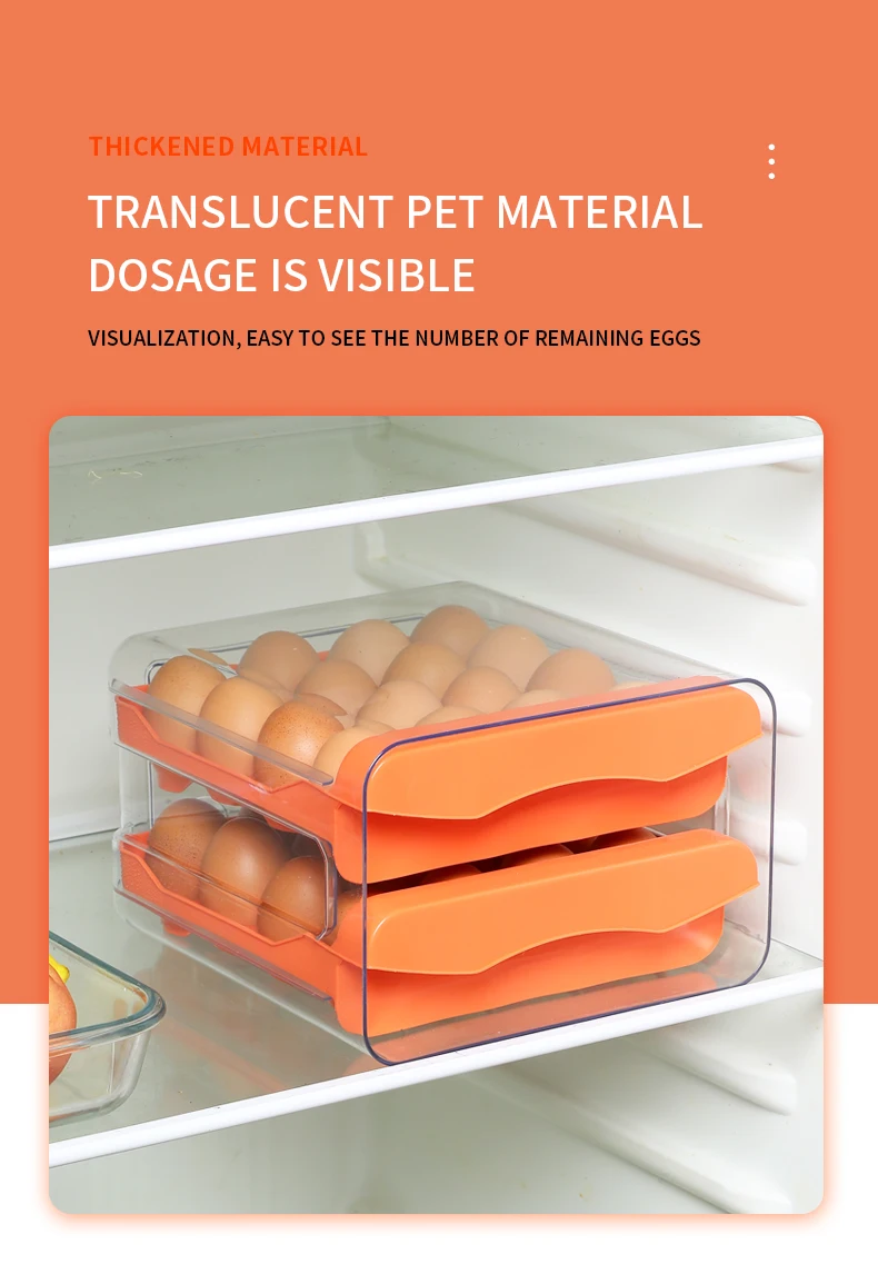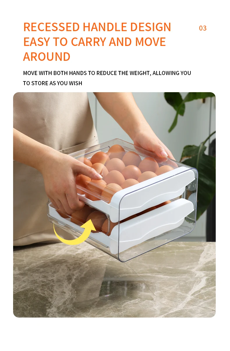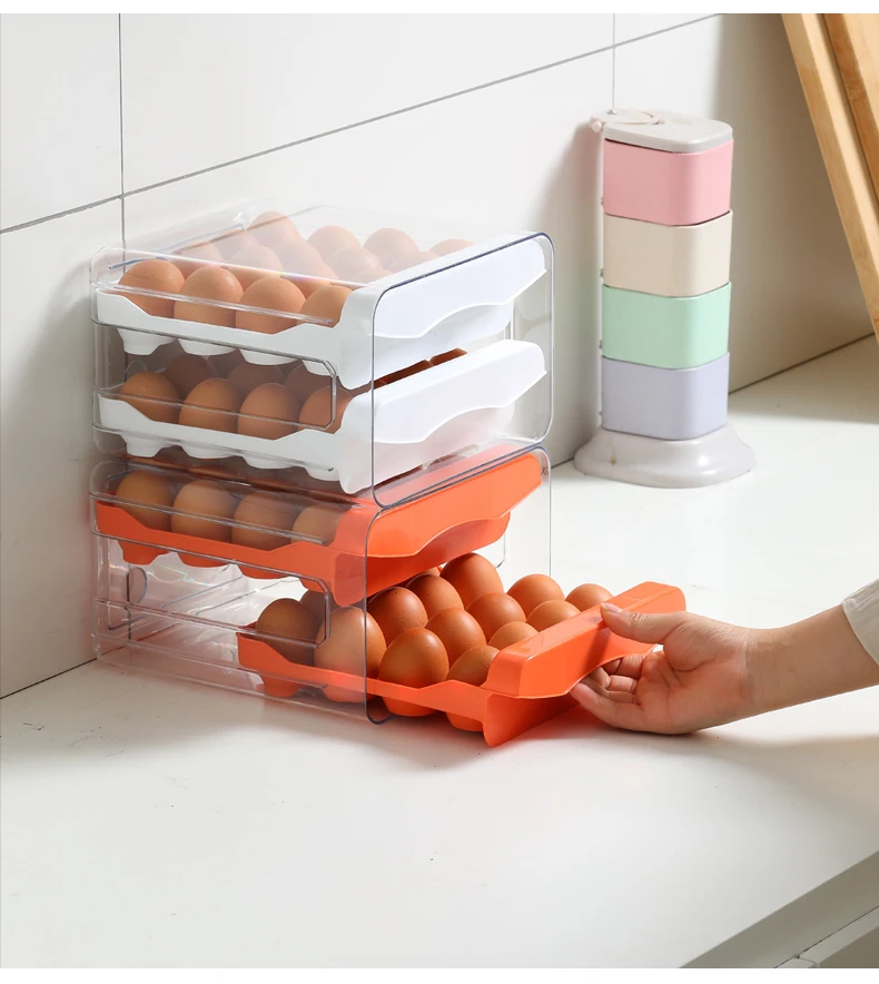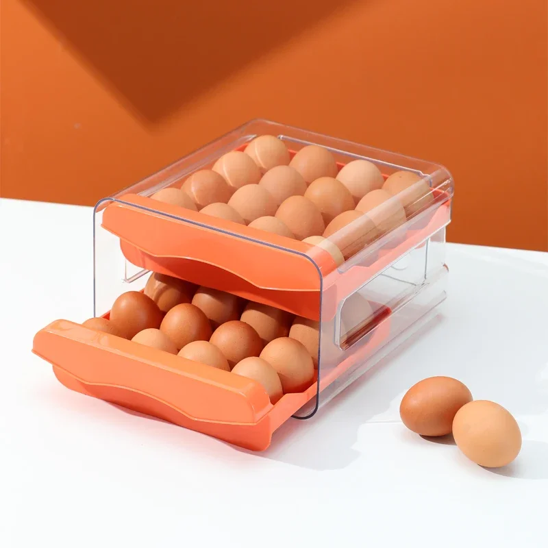 Egg Holder for Double Layer Drawer Organizer with Time Scale Clear Egg Fresh Storage Box for Kitchen Large Capacity Egg Tray