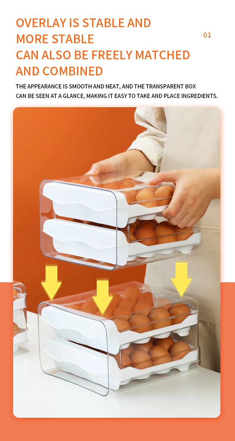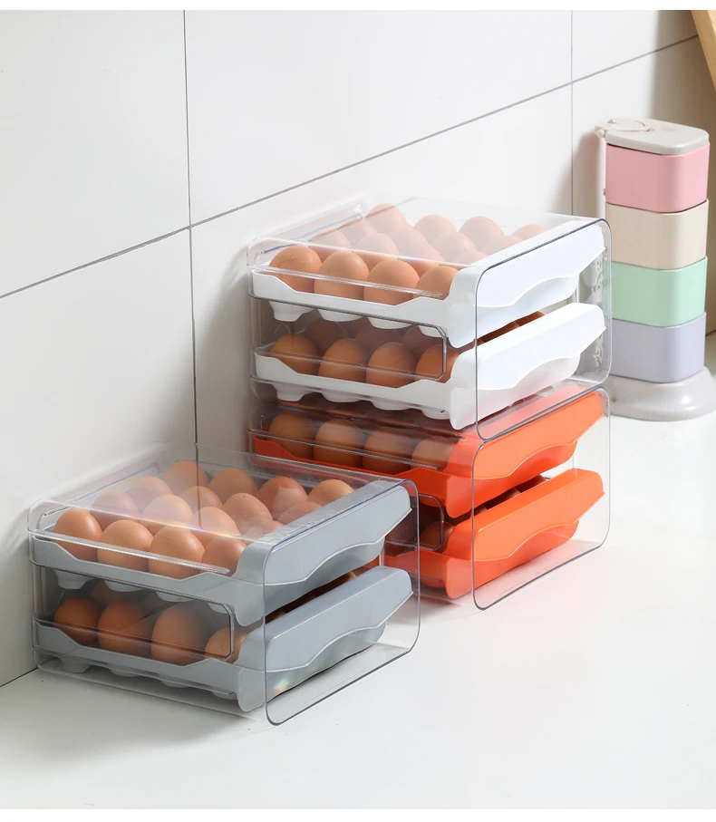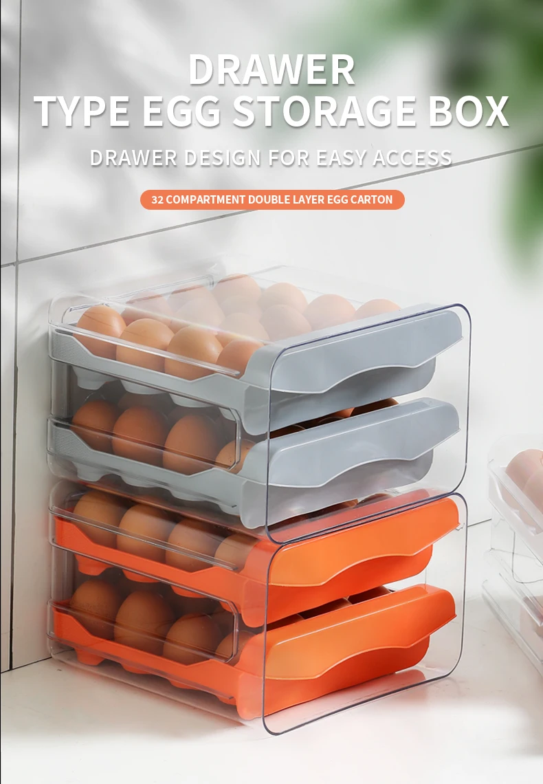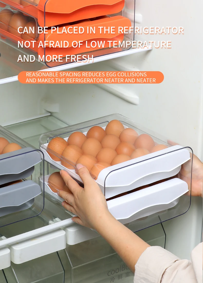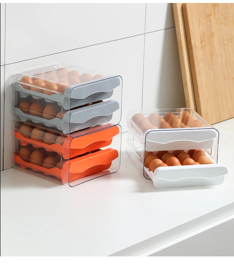 Egg Holder for Double Layer Drawer Organizer with Time Scale Clear Egg Fresh Storage Box for Kitchen Large Capacity Egg Tray