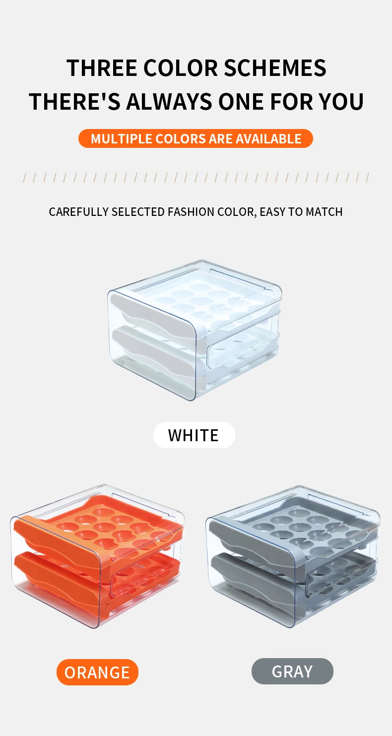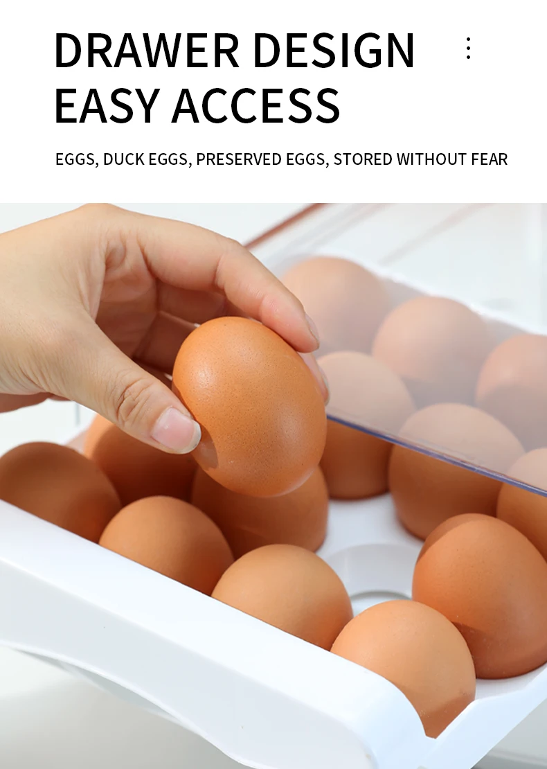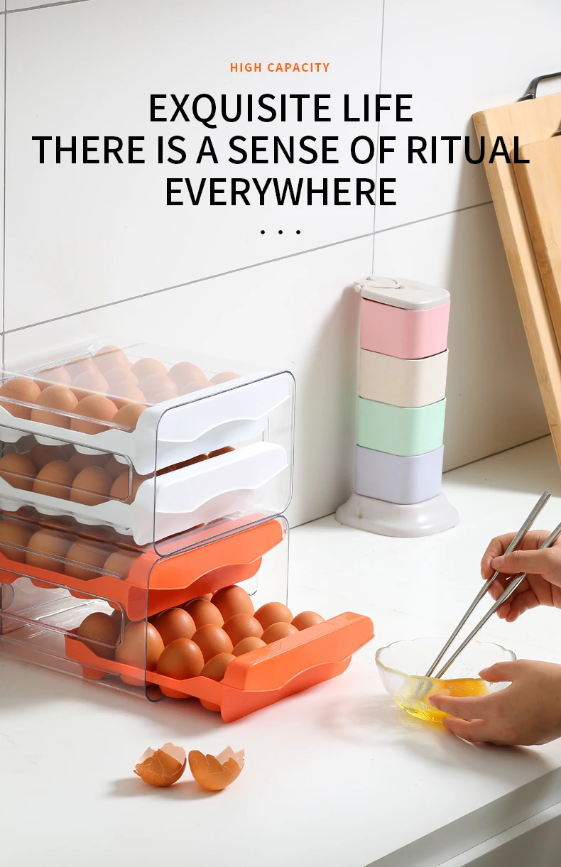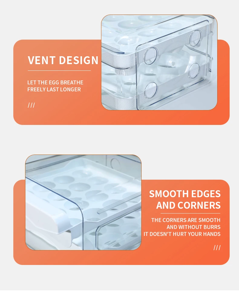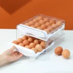 Egg Holder for Double Layer Drawer Organizer with Time Scale Clear Egg Fresh Storage Box for Kitchen Large Capacity Egg Tray