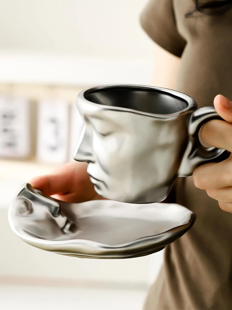 [Unique Tea Cup and Saucers]: Creative cups and saucers with human face design, very similar to a couple of lovers whispering or looking at or kissing, telling the heart, expressing love. The unique design expresses the taste of your personality, your colleagues and friends will praise you