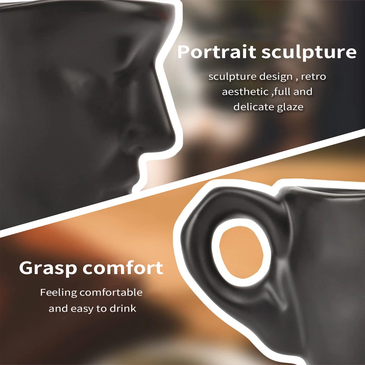 [Features]:The face cup with frosted glaze is easy to clean, can withstand high temperatures, scratch resistant without leaving marks, rounded edges will not hurt your hands, and the portrait relief texture design. It can be used in microwave, oven. Can be cleaned in the dishwasher, suitable as a drink with tea, a unique theme decoration for your home, restaurant or cafe. Perfect for anyone who likes to enjoy their favorite beverage with this cute mug set