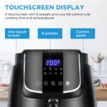 - User-friendly: The bevelled LED digital touch screen makes it easier to use. Non-slip rubber feet ensure that the hot air fryer stands stable on the work surface. The removable non-stick baskets are made of food grade material and dishwasher safe.