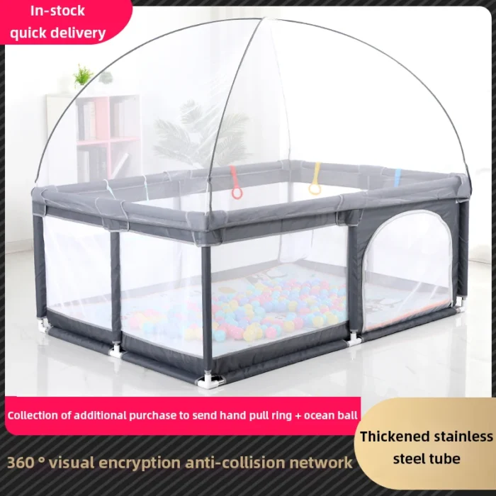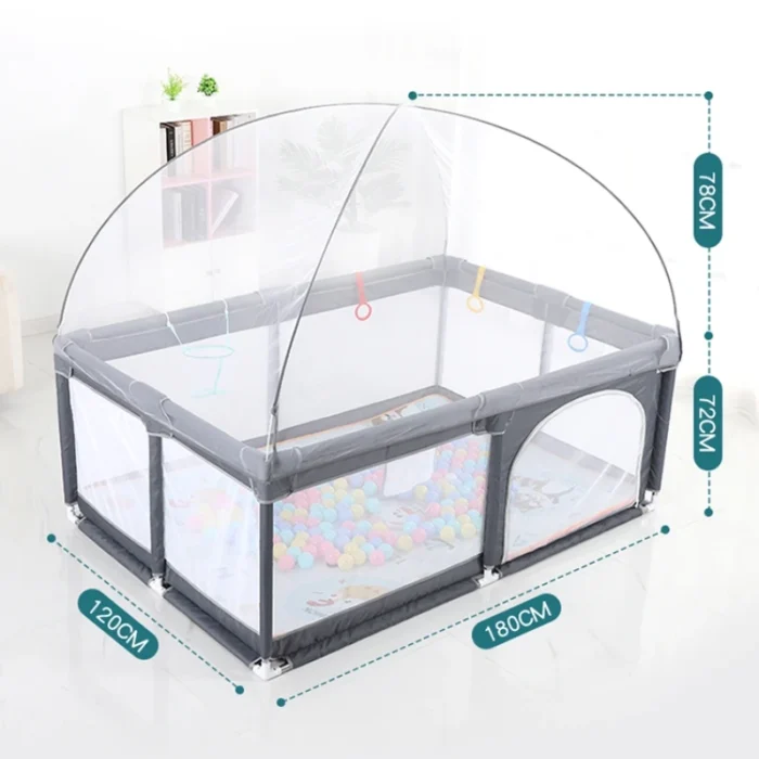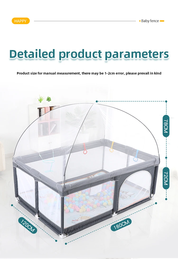 NEW Children’s Playpen with Foam Protector Baby Safety Fence Kids Ball Pit Playpen with Mosquito Net Baby Playground