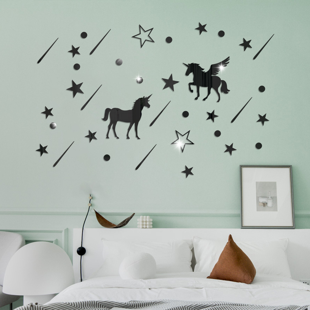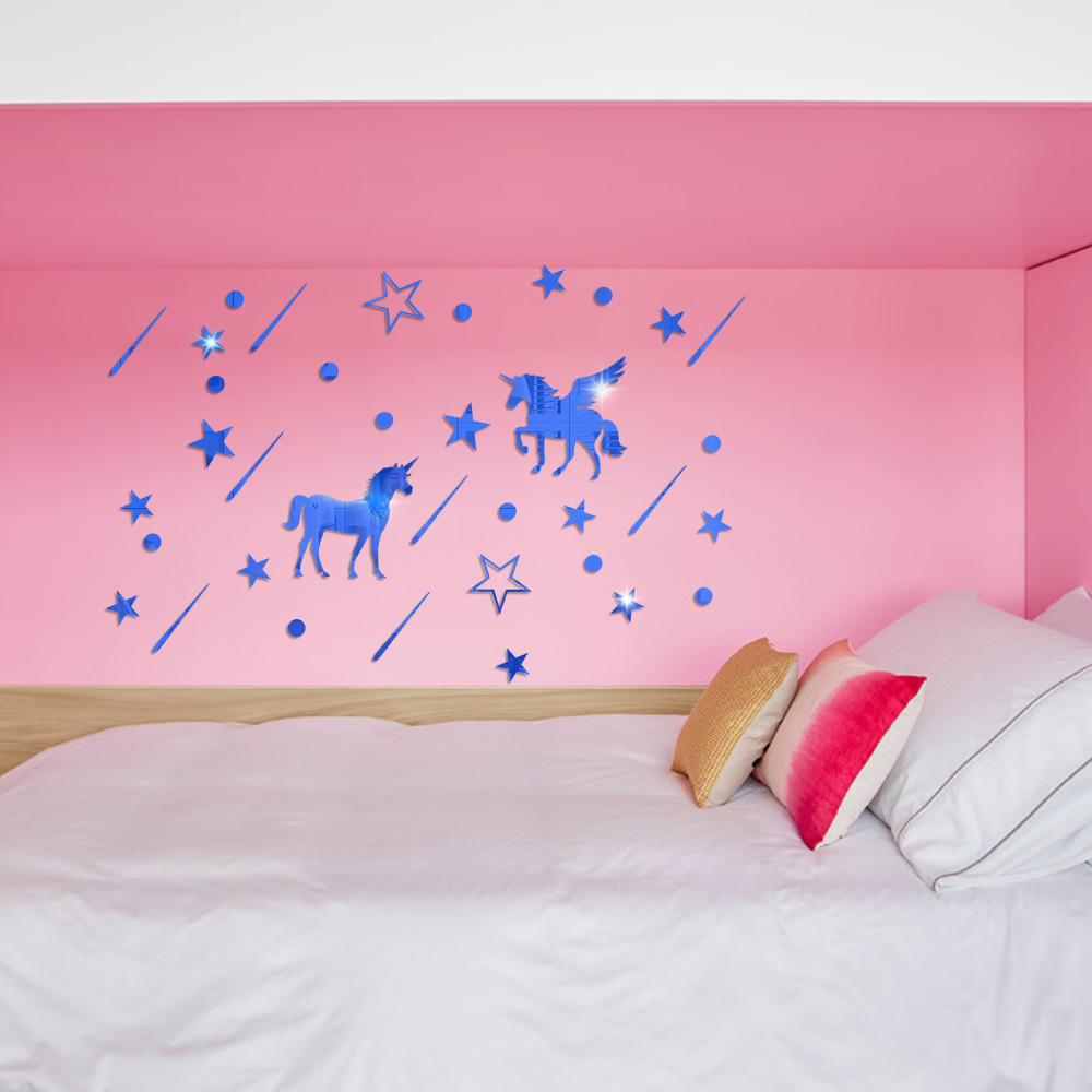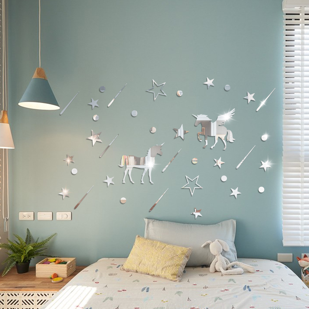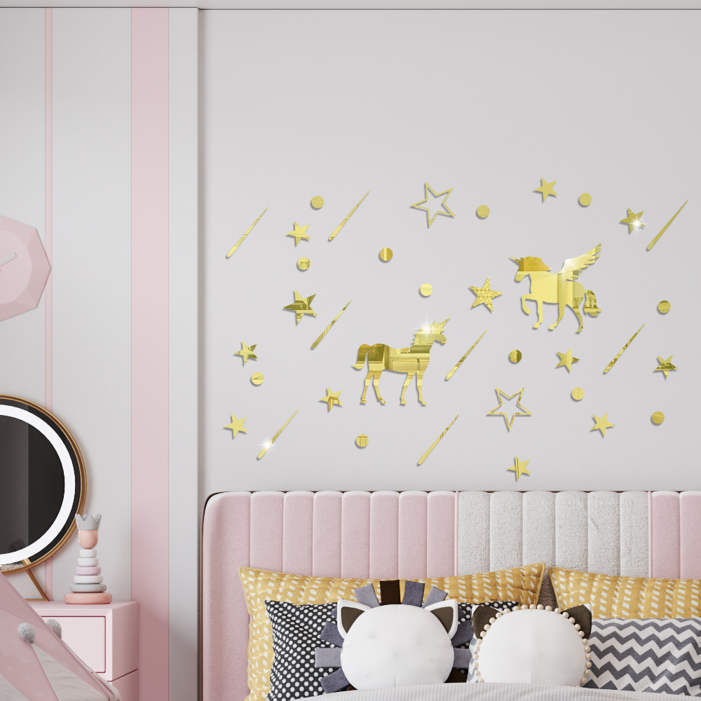Nordic stars Unicorn mirror 3d three-dimensional acrylic wall stickers self-adhesive children’s room decorations room decoration