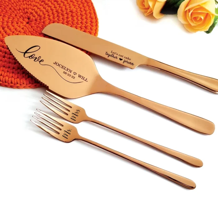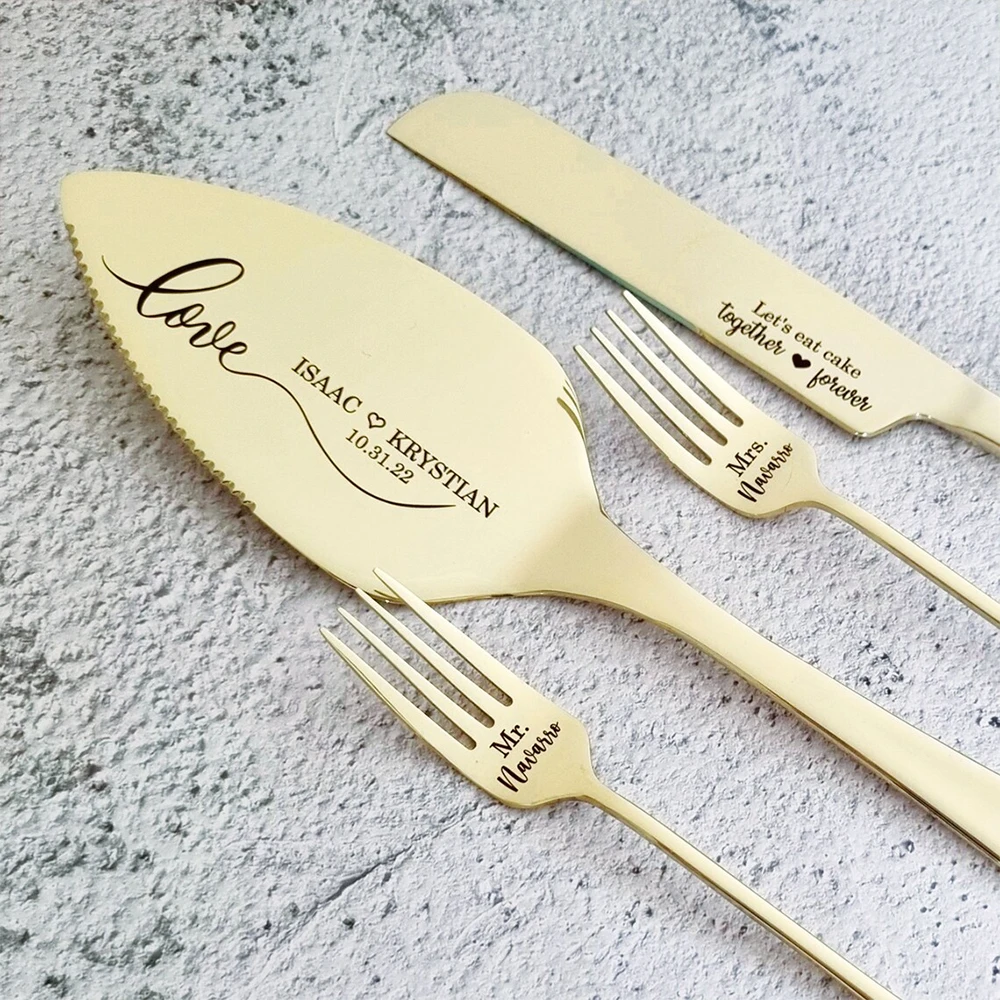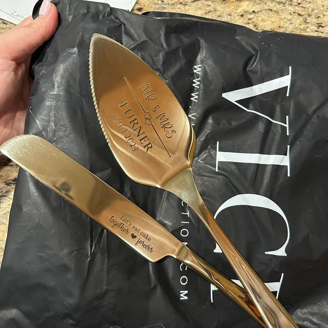 - Custom engraved cake server cutters and knife sets for weddings. Silver, black, gold and rose gold polished stainless steel!