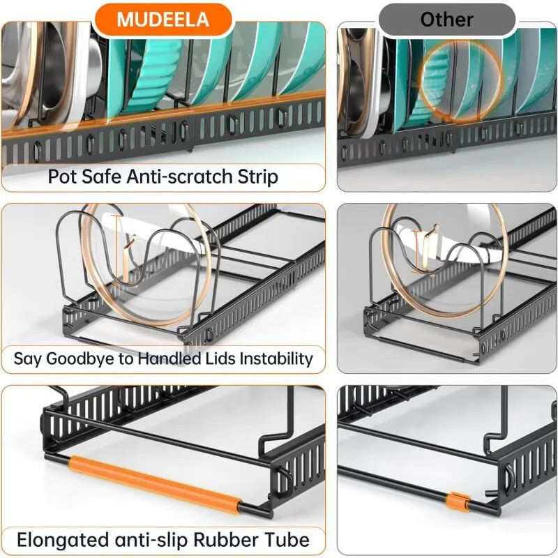 Pot Lid Rack Pan Lid Organizer Retractable Foldable Stainless Steel Plate Dish Holder Shelf Tableware Storage Kitchen Gadgets