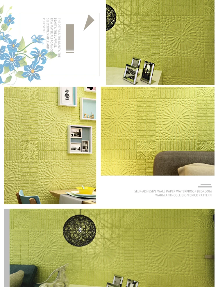 - Feature: Mildew Resistant,Formaldehyde-free,Environment Friendly,Extra Thick,SELF-ADHESIVE,Water Resistant,Fluorescent,3D