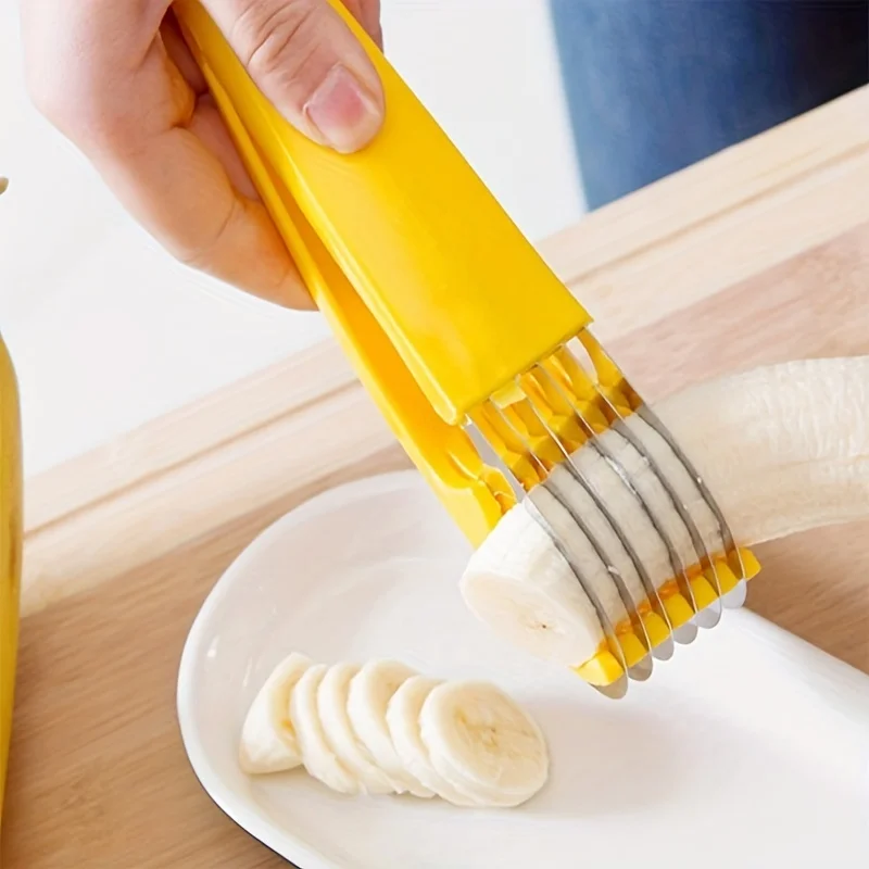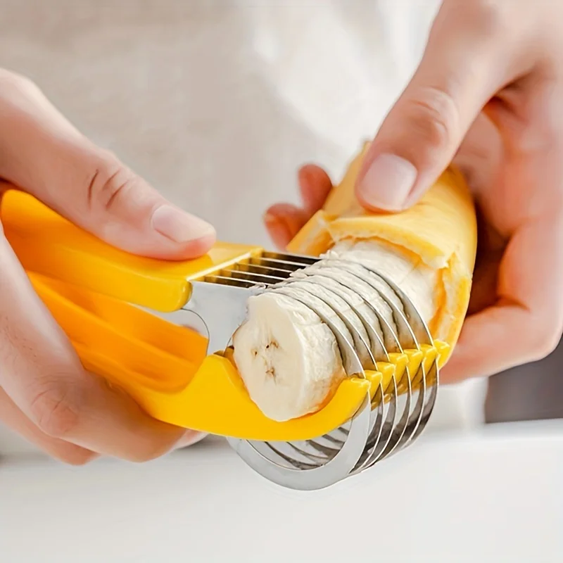 Stainless Steel Banana Slicer ABS and Stainless Steel Fruit Vegetable Salad Peeler Cutter Kitchen Tools for Banana Strawberry