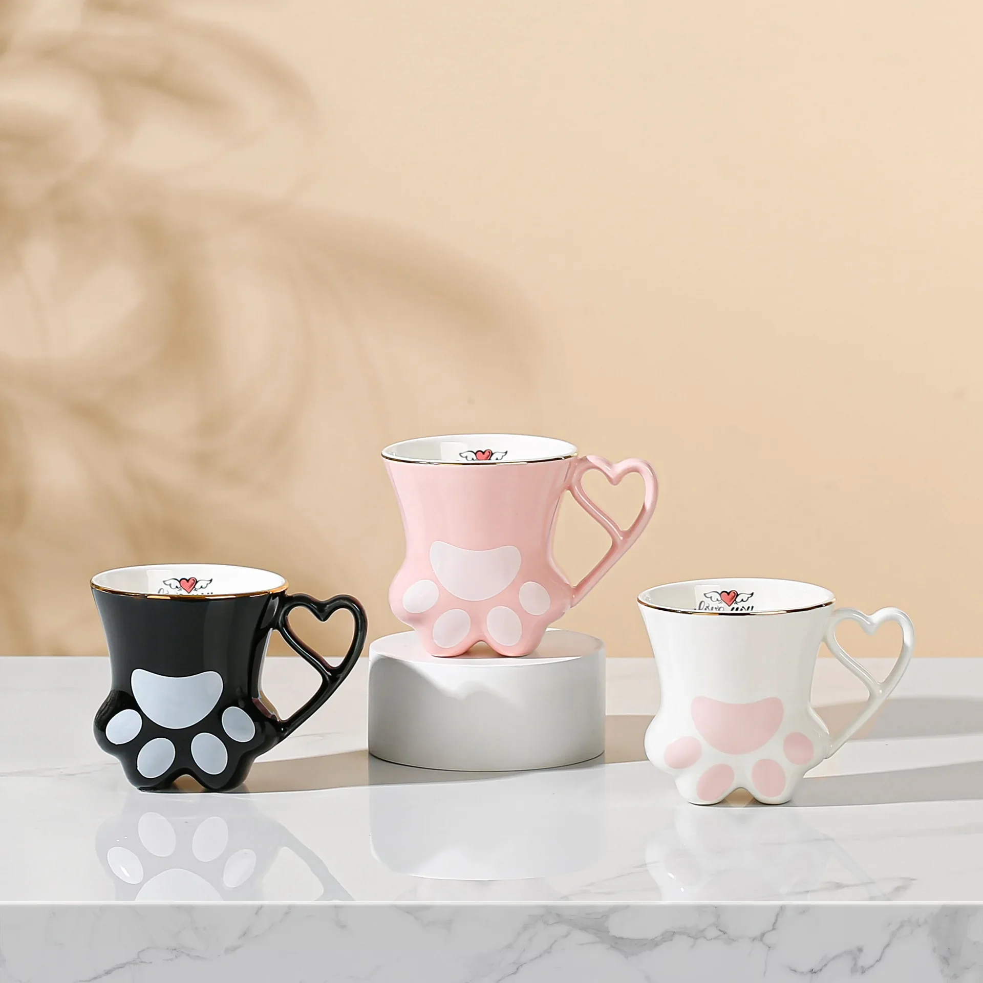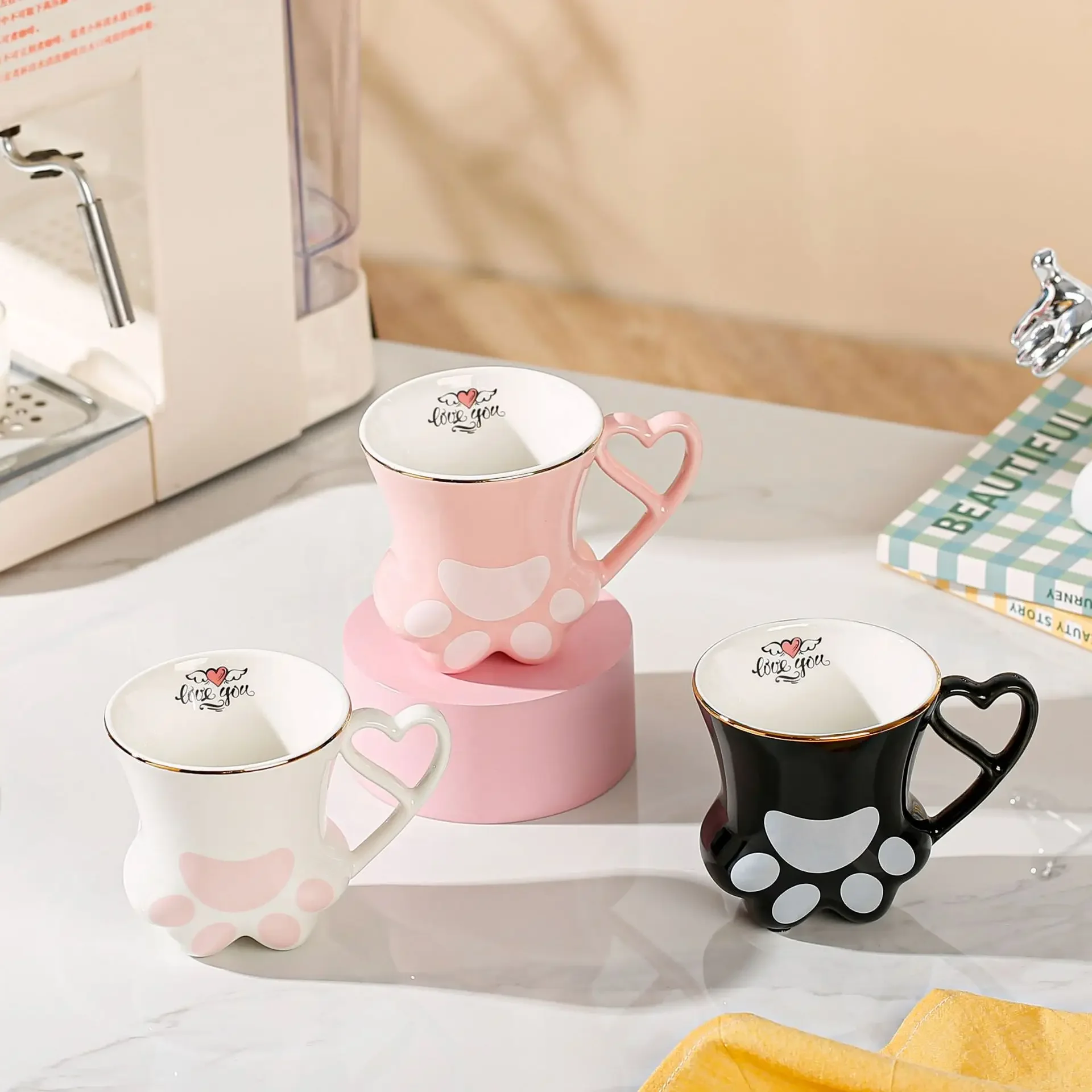 Super Cute Mug Creative Cat’s Paw Gold Painting Ceramic Cup Office Water Glass Tea Cup Couple Cup Practical Gift