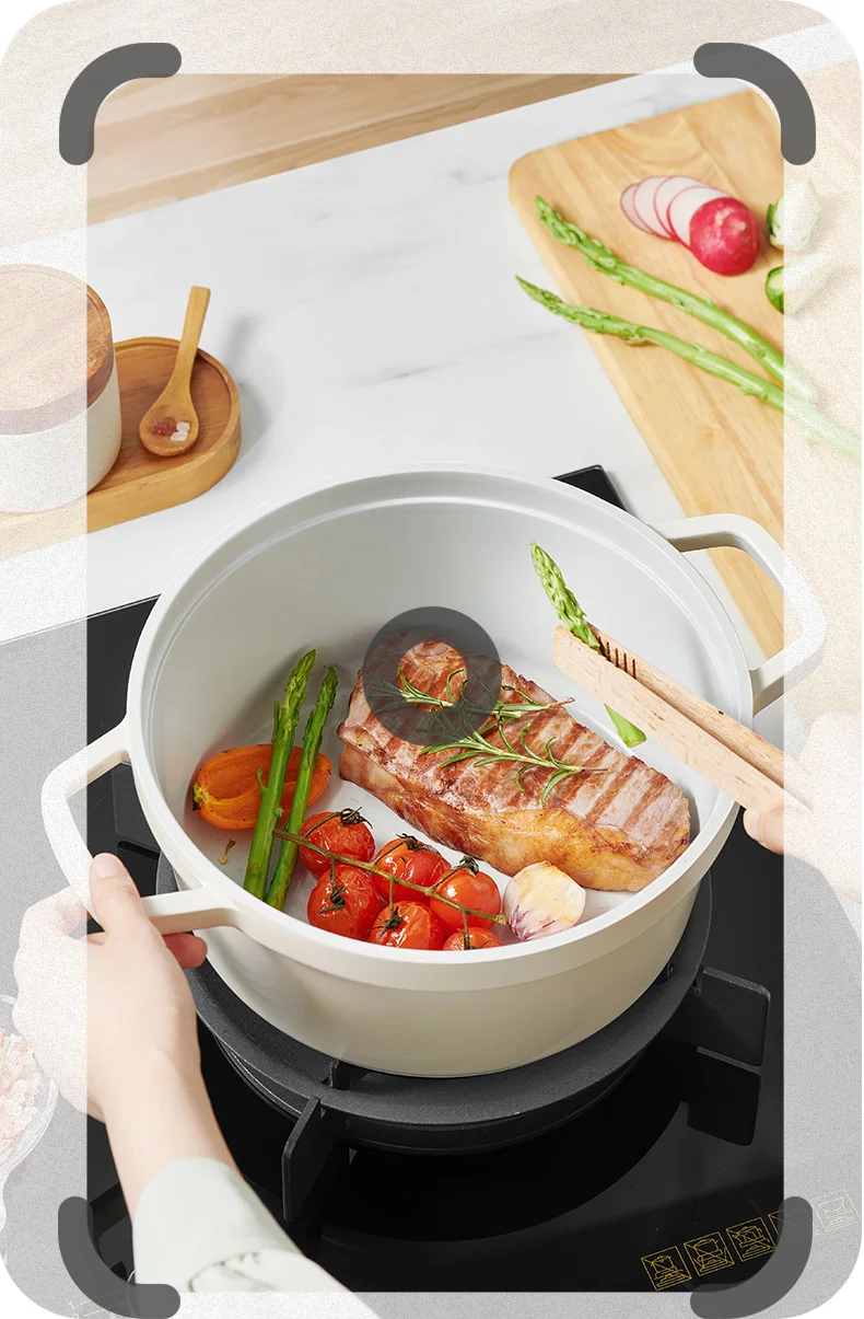 【High-quality metal inner layer】The alloy inner layer is evenly heated, evenly conducts heat without sticking to the pan, rejects oily smoke, and releases delicious food.