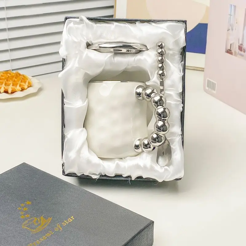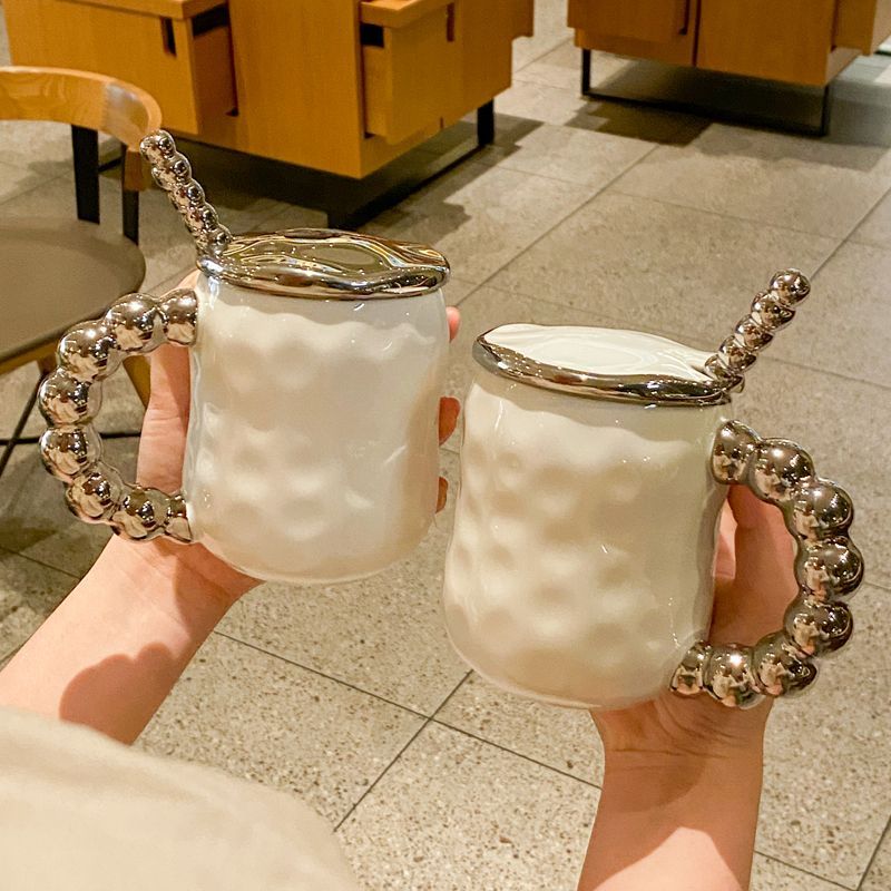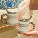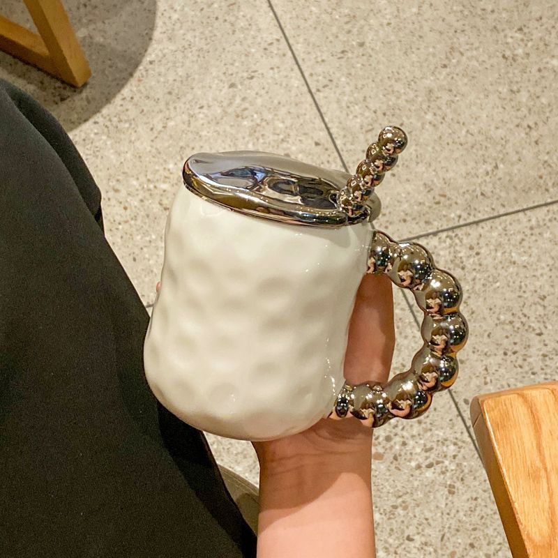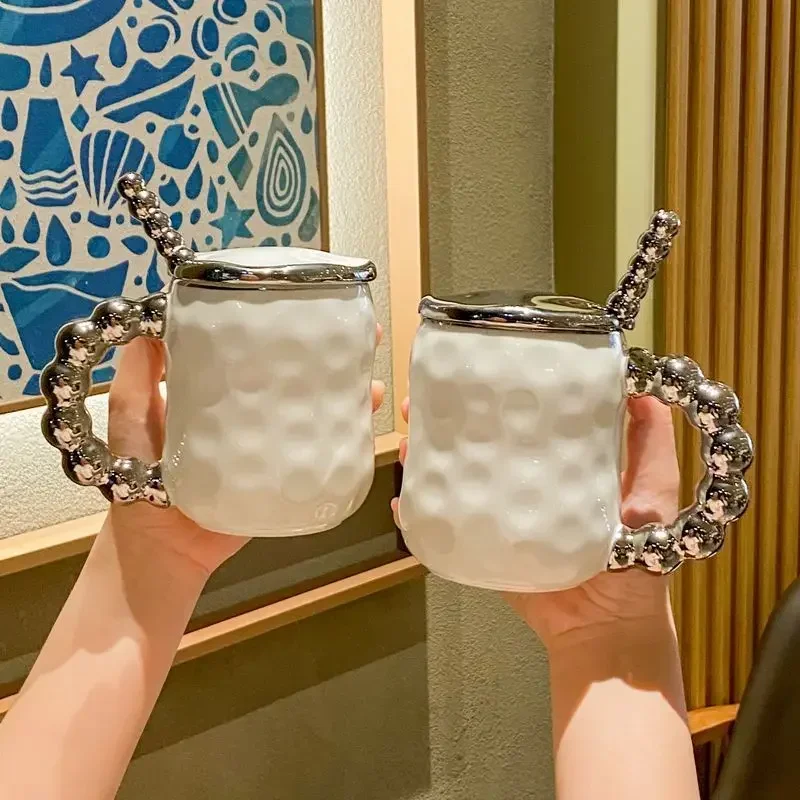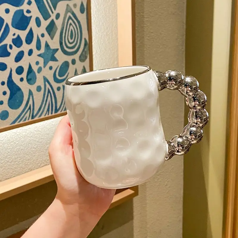 Recommend this hammer patterned ceramic cup. Choose high-quality pottery fired with hammer patterned texture that resembles a sparkling water surface, reflecting a unique radiance under light. The texture is full of texture, and the bottom is stable and sturdy. The bead string handle provides a comfortable, simple and exquisite grip. It is great for brewing tea, coffee, and fruit juice~