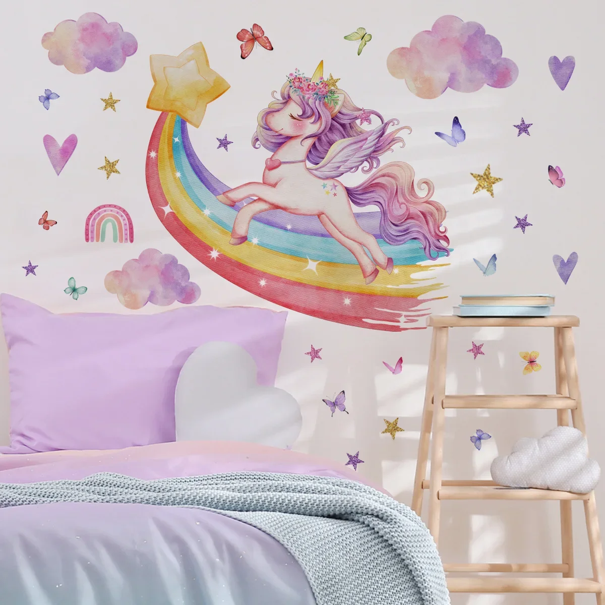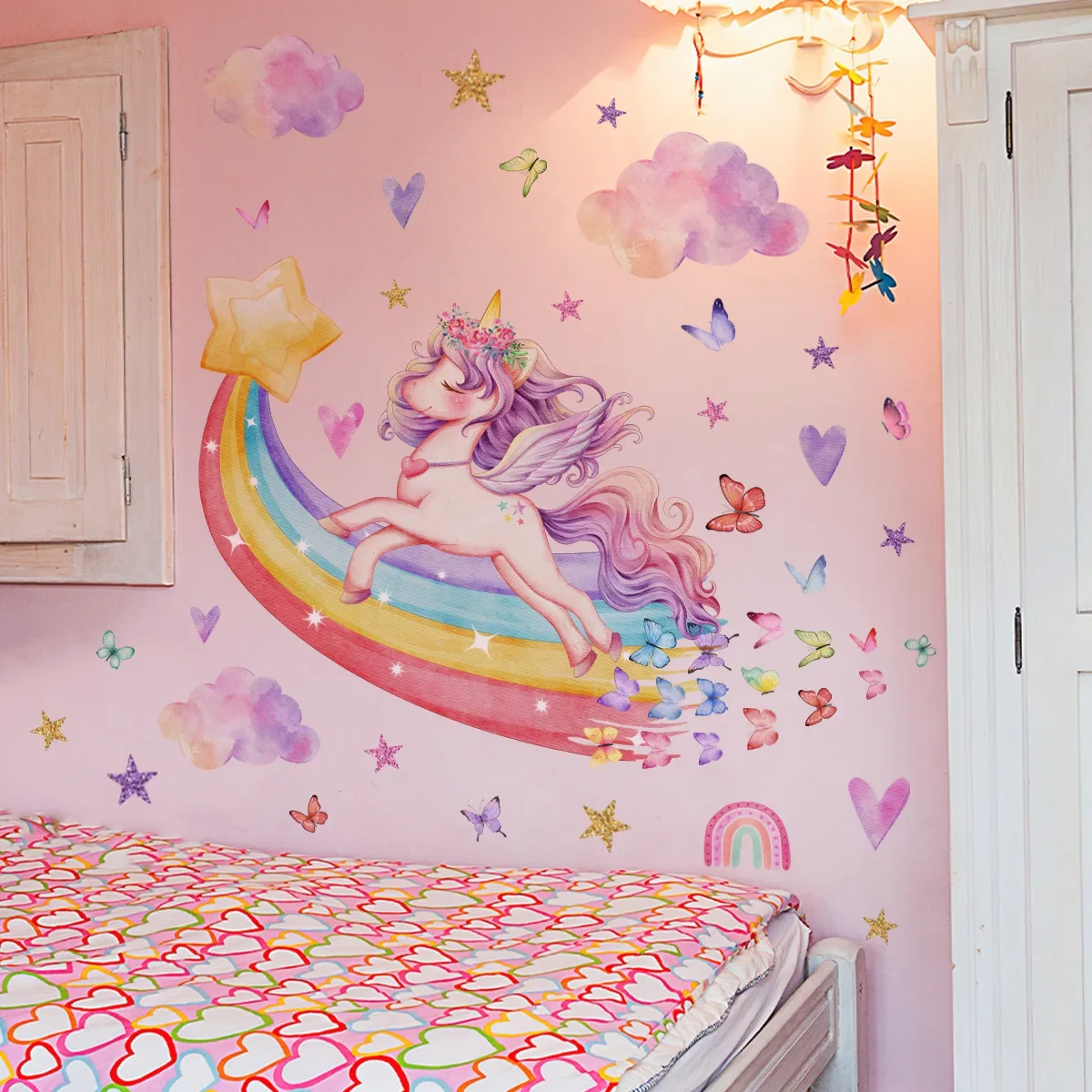Unicorn Wall Stickers for Children Girl Wall Stickers Kids Room Pony Stickers for Wall Rainbow Unicorn Wallpaper for Bedroom