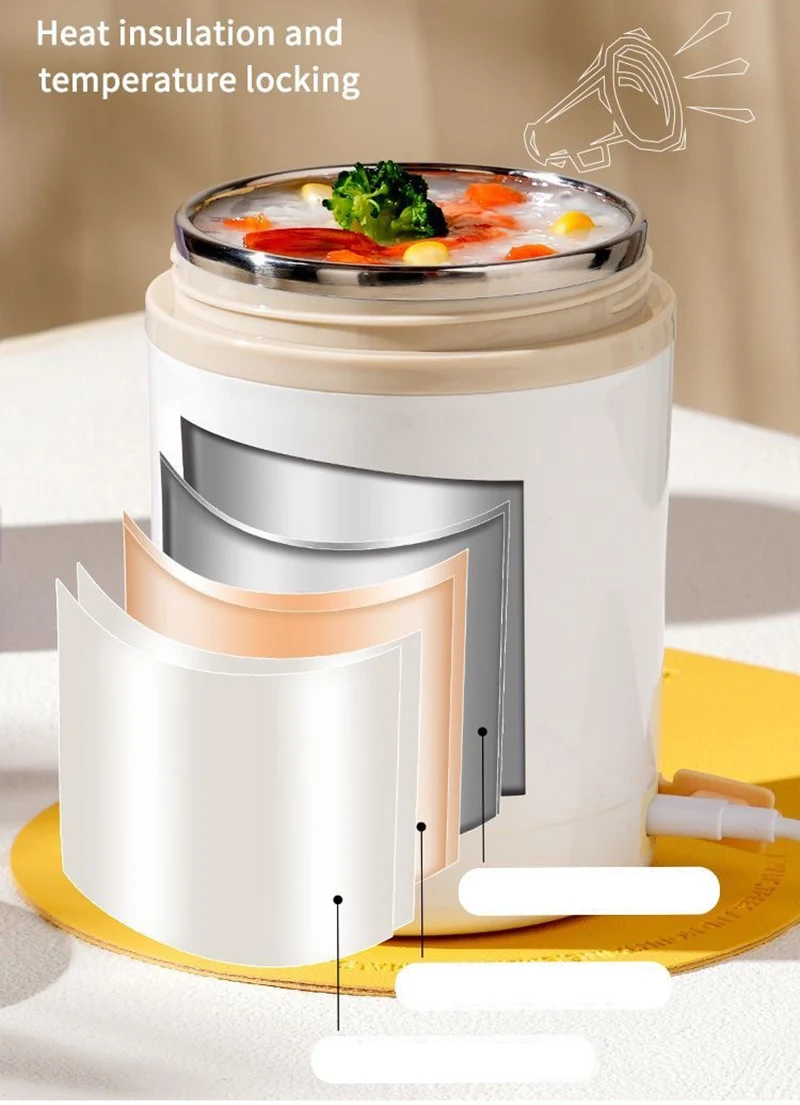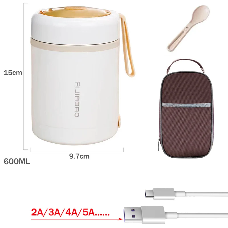 USB Stainless Steel Electric Lunch Box 0.6L 5V 12V 24V Worker Travel Camping Portable Food Heated Warm Container Car Office Set