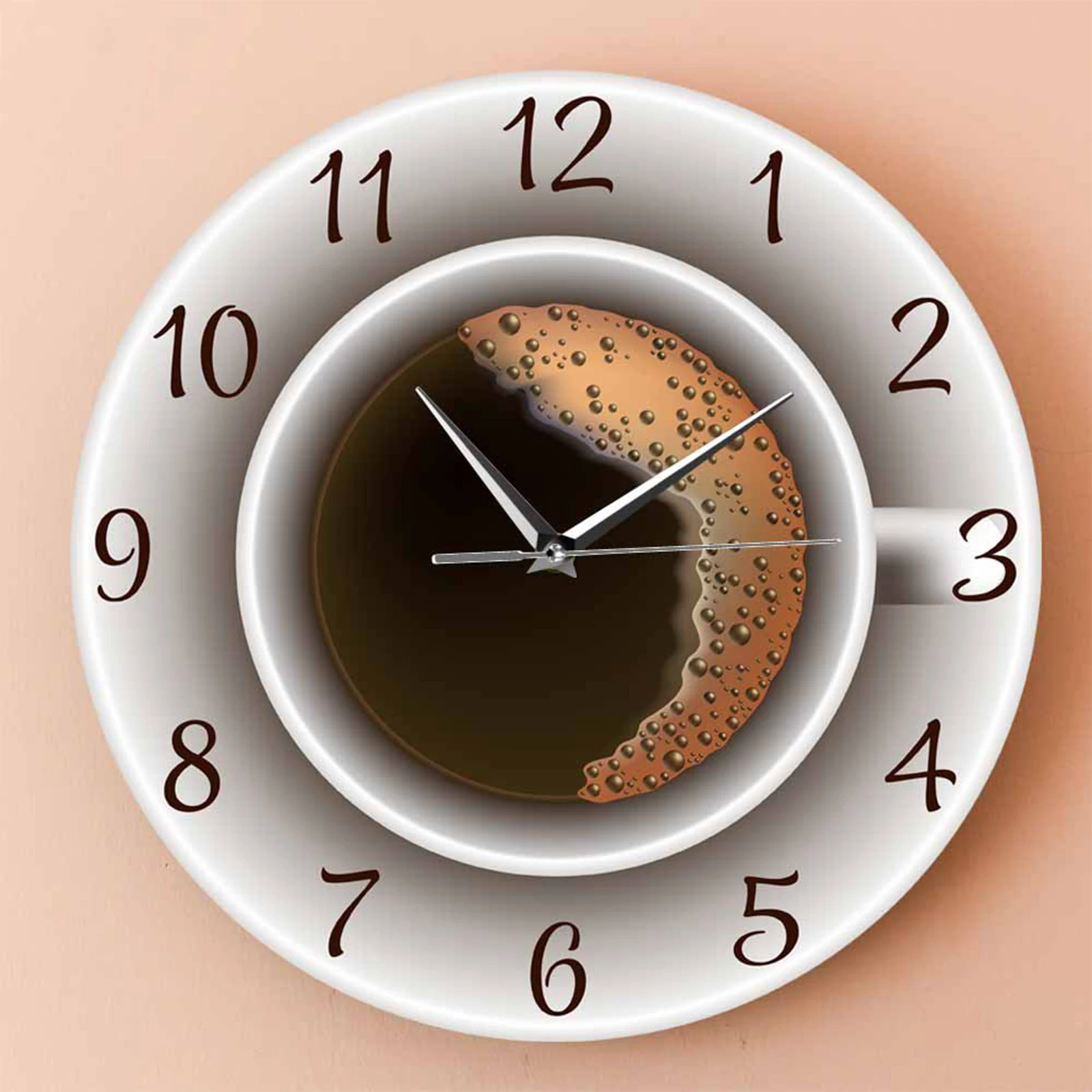 Wall Clock Style Fashion Simple Silent Coffee Cup Background for Home Decor Pure White Type Wall Clock Modern Design Timer