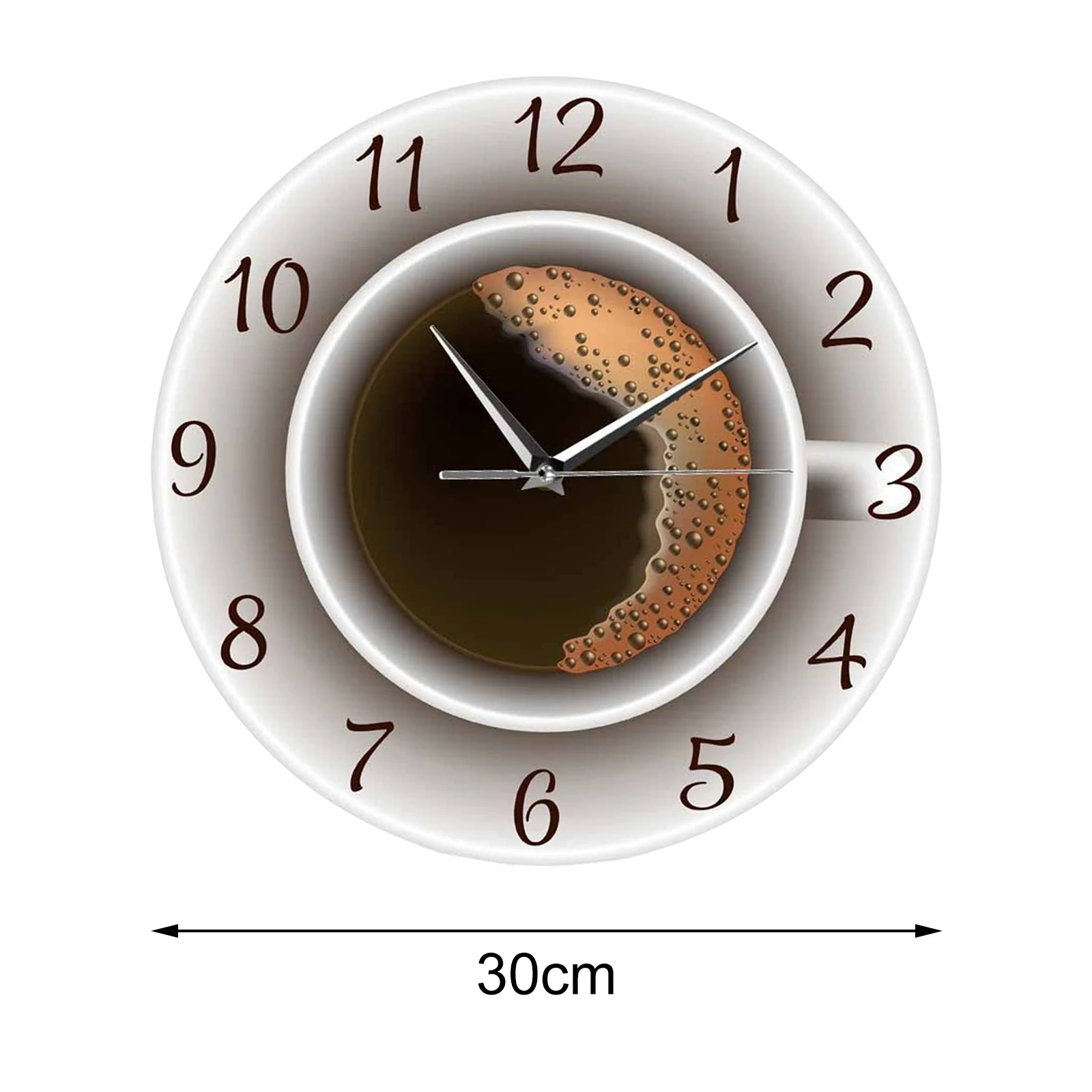 Large Numbers: Coffee Cup pattern Wall Clock is 30cm/11.8inch open faced design, it can easily be seen from a distance.