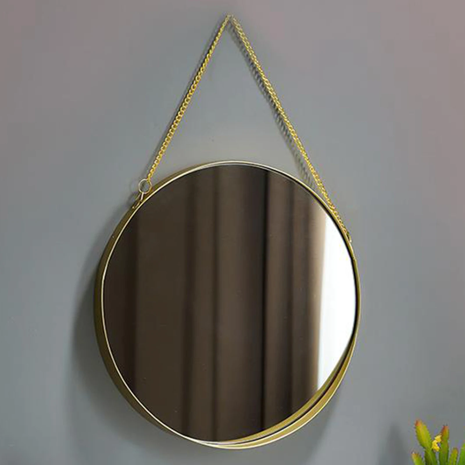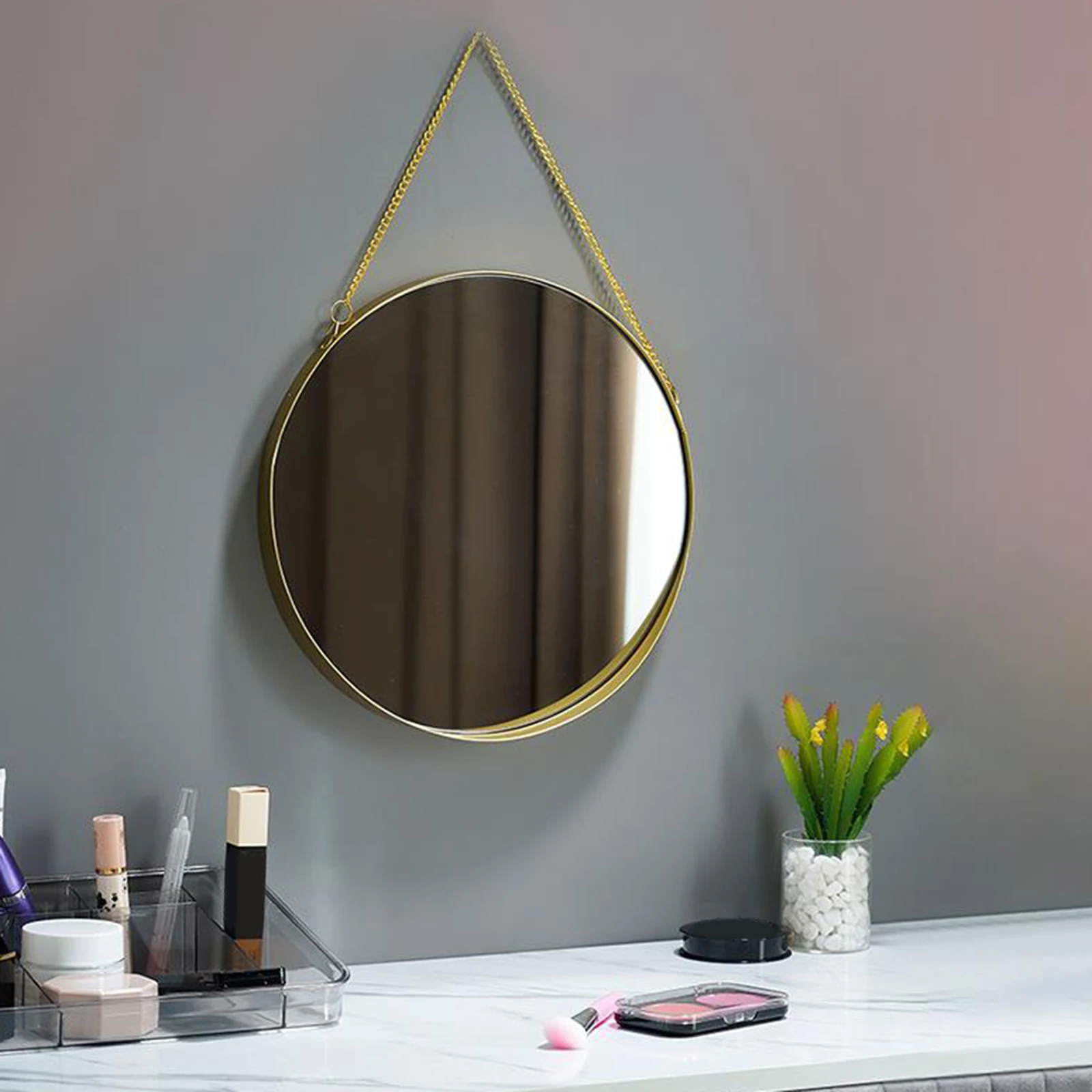 Wall Hanging Mirror with Chain Bedroom Gold Frame Decorative Home