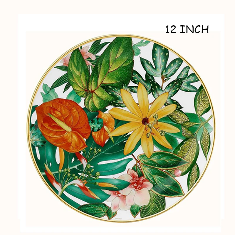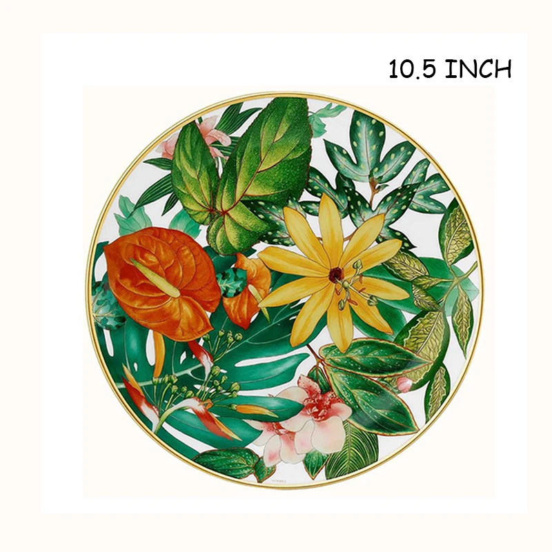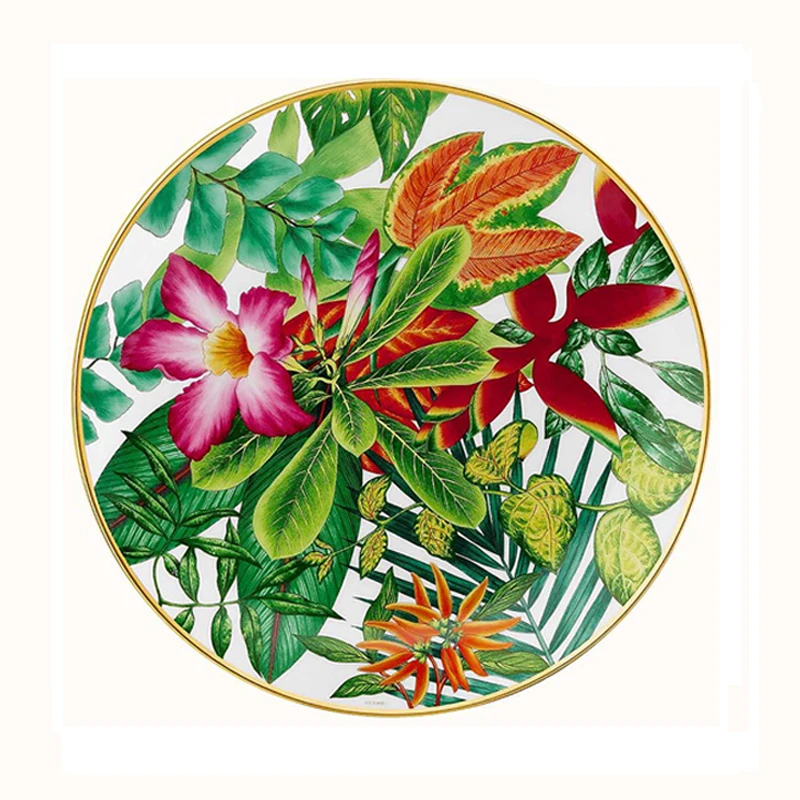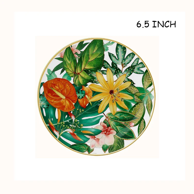 Western Bone China Round Plate, Creative Forest Dessert Series, Leaves, Flowers, Restaurant and Home Use Coffee Set and Bow