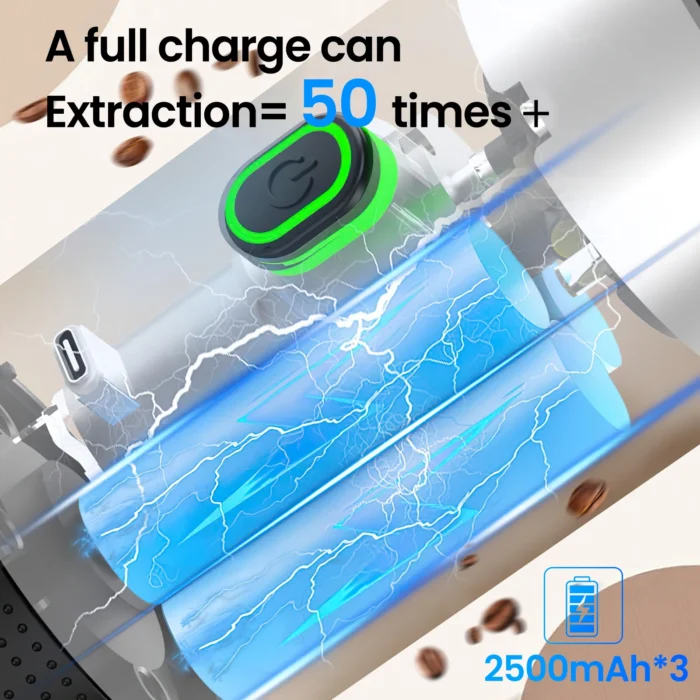 2. Intelligent Extraction: The portable espresso machine adopts intelligent heating function, making extraction convenient. Double click the power switch to turn on the heating extraction function and heat the extraction. Long press the power switch to directly activate the extraction function, which is easy to operate and suitable for various hot/cold drinks.