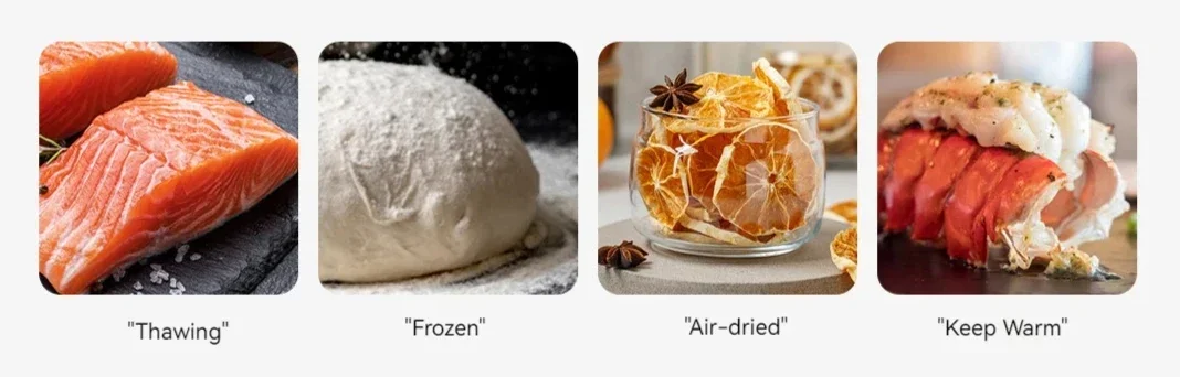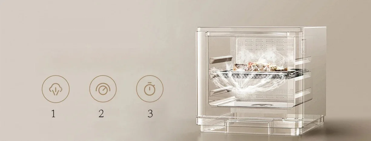 Multi-functional cooking, defrosting, fermenting, air-drying, keeping warm.