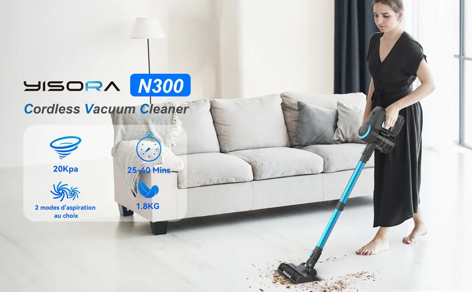 YISORA Wireless Handheld Vacuum Cleaner 20kPa Powerful Suction Removable Battery, Up to 40Mins Home Dust Cleaner-N300 Blue